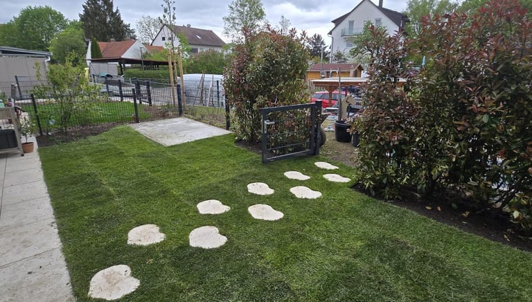 Individuelle Planung, Rund um Pflege, Baumfällungen, Baggerarbeiten und Rollrasenverlegung.