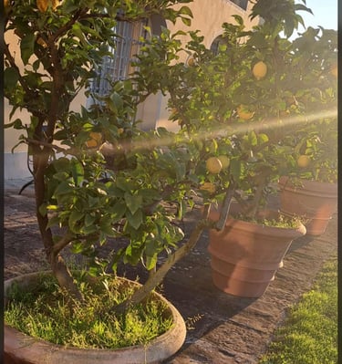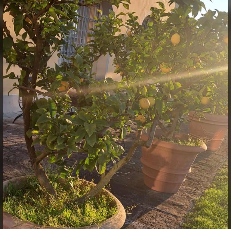 Vielfalt aus Erde, Töpfen, Dekorationen und sizilianischen Spezialitäten wie Öl und Wein.